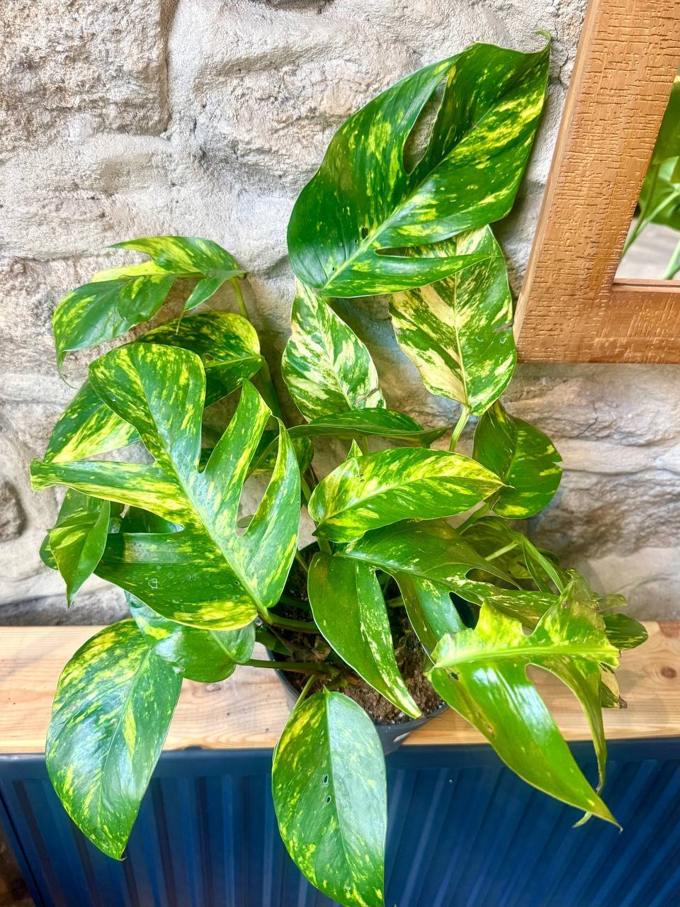 Epipremnum pinnatum Cintho Goldfinger to rzadka i spektakularna odmiana epipremnum, charakteryzująca się dużymi, błyszczącymi liśćmi w intensywnym, limonkowo-żółtym kolorze. Liście mają wydłużony, sercowaty kształt, a na blaszce liściowej widoczne są złociste smugi i pasma. Roślina ma pokrój pnący lub zwisający i jest idealna do uprawy w warunkach domowych, nawet dla początkujących.